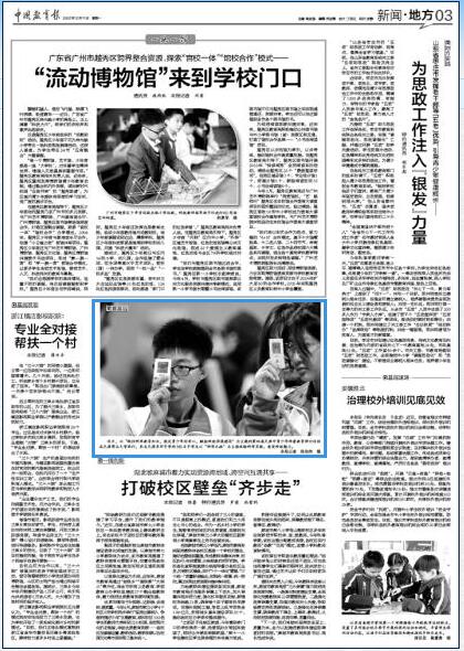 12月11日,《中國教育報》第3版報道學校主辦的第四屆天津市青少年科普教育研討活動。12月3日,第四屆天津市青少年科普教育研討會在天津商業大學體育館舉行。會議圍繞“做好科學教育加法,激發青少年好奇心,賦能科技強國建設”主題,以“科學之旅”為主線,為到場的300名中學生安排了50個種類的科學實驗。活動中,同學們饒有興趣的帶著“科學護照”奔赴一個個科學實驗臺探尋“打卡”,力爭成為“科學小達人”。與會專家在科學實驗觀摩中深入交流,共話青少年科學教育。