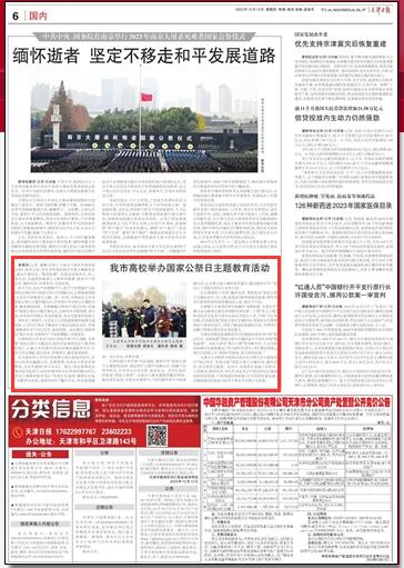 12月14日,《天津日?qǐng)?bào)》報(bào)道學(xué)校舉行國家公祭日升旗儀式。