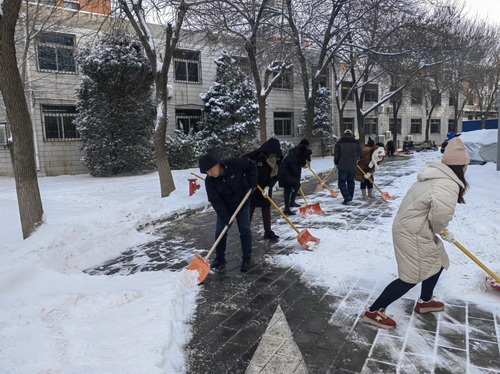 天津商業大學校內師生共同清雪 供圖 天津商業大學