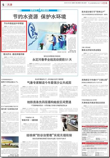 3月23日,《天津日報》第五版報道學(xué)校舉辦“水資源及其利用”主題科普活動.