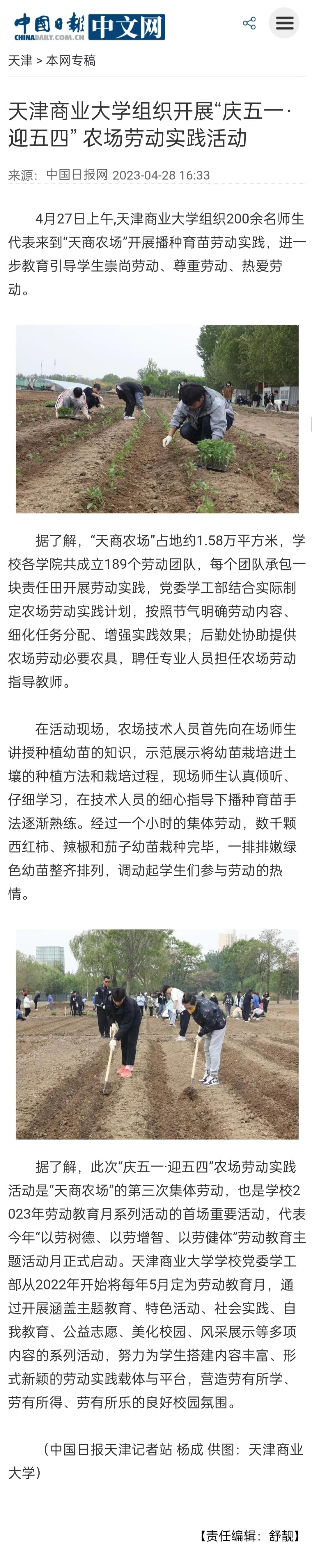天津商業大學組織開展“慶五一·迎五四” 農場勞動實踐活動