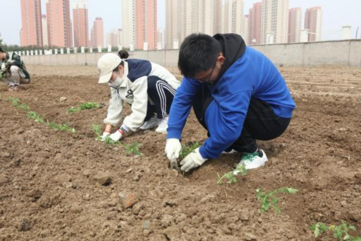 “天商農場”占地約1.58萬平方米,學校各學院共成立189個勞動團隊,每個團隊承包一塊責任田開展勞動實踐,黨委學工部結合實際制定農場勞動實踐計劃,按照節氣明確勞動內容、細化任務分配、增強實踐效果;后勤處協助提供農場勞動必要農具,聘任專業人員擔任農場勞動指導教師。