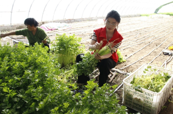 參與蔬菜摘收工作 圖片來源:天津商業大學