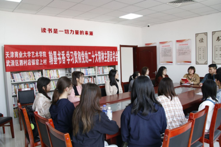 活動當天,天津商業大學二十余位師生代表參觀窯上村農家書屋,開展“翰墨書香”學習貫徹黨的二十大精神主題讀書會。會上,天津商業大學學生黨員代表分享了黨的二十大精神的學習心得,并表示未來要投身基層、扎根基層,將自己的夢想融入到偉大中國夢中。窯上村黨員代表結合基層工作特點,分享了堅定的理想信念在工作中的重要引領作用,希望學生們好好學習本領,未來積極投身到基層建設與鄉村振興當中來。