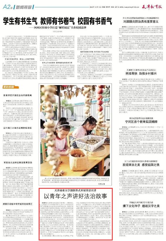 10月16日,《天津教育報》報道我校外國語學院“以青年之聲講好法治故事”實踐團隊開展普法宣講活動。