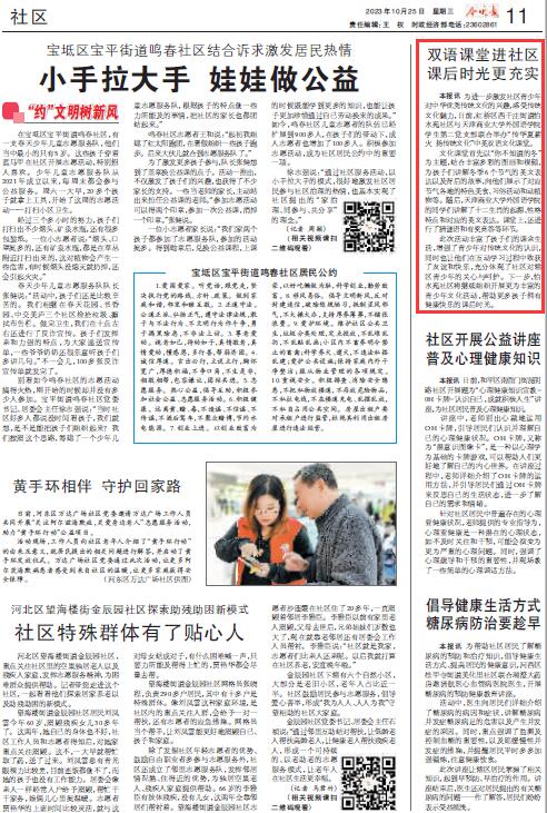 10月25日,《今晚報(bào)》報(bào)道我校外國(guó)語(yǔ)學(xué)院學(xué)生第二黨支部與紅橋區(qū)西于莊街道怡水苑社區(qū)聯(lián)合舉辦“傳華夏薪火揚(yáng)傳統(tǒng)文化”中英雙語(yǔ)文化課堂。