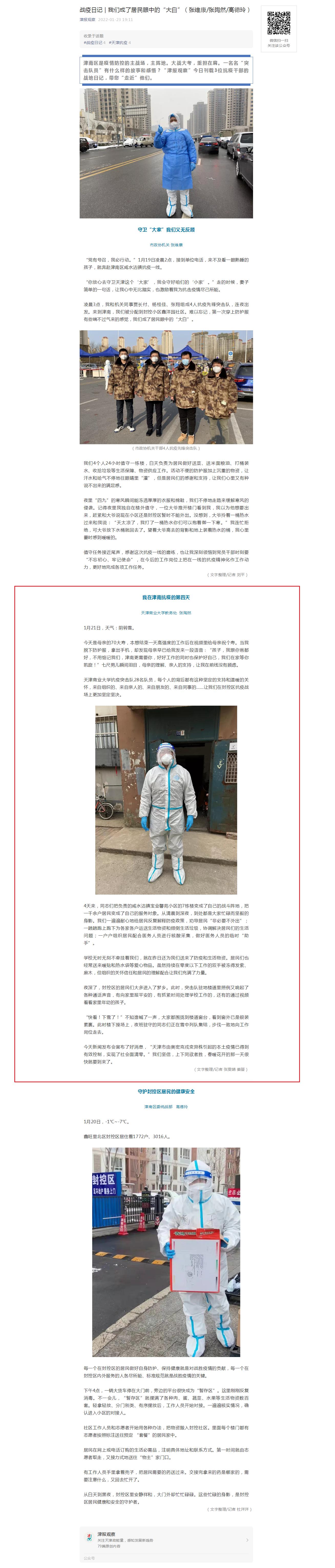 津報觀察公眾號報道我校赴津南抗疫干部的日記