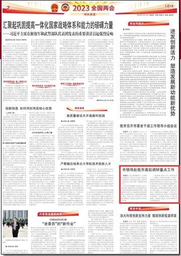 3月10日,《天津日報》以“市領導赴天津高校調研重點工作”為題報道市委常委、市委教育工委書記王旭赴我校調研座談。