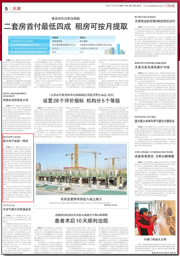 12月22日,《天津日報》第五版報道我校學子在兩項全國性大賽連獲一等獎。