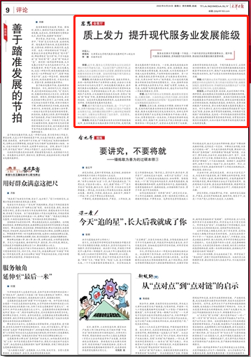 李娜:提升現代服務業發展能級,提高服務質量效益,關鍵是創新。比如加快適應性技術創新、深化體制機制改革等,創新推進的深度和廣度直接影響現代服務業發展能級的高度和水平。