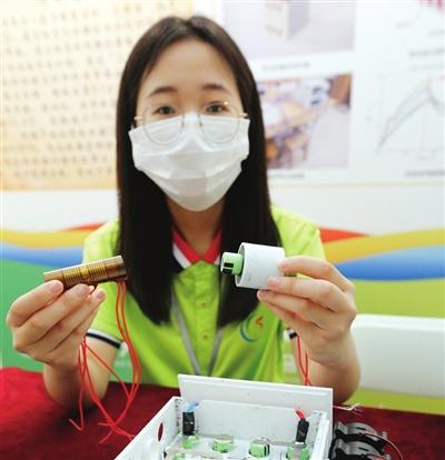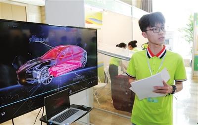 特等獎,天津大學(xué)的“醇暖車開”,用作電動汽車輔助熱源的甲醇多孔介質(zhì)燃燒器。 本報記者 姜寶成 攝