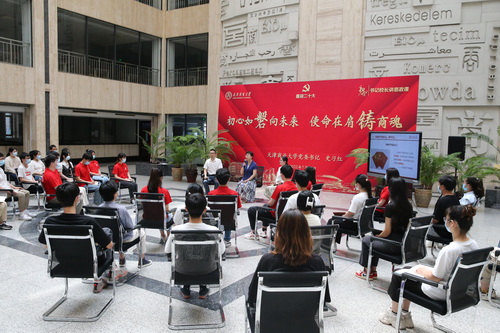 史習(xí)紅結(jié)合天津市第十二次黨代會精神以及學(xué)校辦學(xué)定位,援引青年榜樣、優(yōu)秀學(xué)子、杰出校友等身邊榜樣,與在座師生分享了百年黨史奮斗歷程的啟示。一是,志存高遠(yuǎn)、信念堅定是青年成才之基。要堅定不移聽黨話、跟黨走,心懷“國之大者”,筑牢馬克思主義信仰、中國特色社會主義信念,樹立投身中華民族偉大復(fù)興中國夢的雄心,做有志氣、有骨氣、有底氣的時代新人。二是,腳踏實地、崇德向善是青年立身之本。要注重提升商學(xué)素養(yǎng),掌握核心的商科理論知識,具備基本的商務(wù)運營能力,秉持正確的商業(yè)價值觀。明大德、守公德、嚴(yán)私德,形成明德惟馨的濃厚氛圍,凝聚向上向善的強大力量。三是,勇于擔(dān)當(dāng)、樂于奉獻(xiàn)是青年立業(yè)之要。一批批天商學(xué)子奔赴邊疆、扎根基層。戰(zhàn)疫中,天商學(xué)子更是迎難而上、挺身而出,生動詮釋了團(tuán)結(jié)拼搏、勇于奉獻(xiàn)、百折不撓、敢于擔(dān)當(dāng)?shù)奶焐叹瘛R趽?dān)當(dāng)中歷練,在服務(wù)社會、奉獻(xiàn)國家中實現(xiàn)人生理想,成就人生價值。四是,踔厲奮發(fā)、砥礪奮斗是青年成事之道。實現(xiàn)中華民族偉大復(fù)興仍需一代又一代青年擔(dān)當(dāng)使命、永續(xù)奮斗。要珍惜偉大時代,不負(fù)青春韶華,秉承“篤學(xué)、弘毅、明德、濟世”的校訓(xùn)精神,在激揚青春的賽道上跑出天商學(xué)子的風(fēng)采,爭做堪當(dāng)民族復(fù)興重任的時代新人!