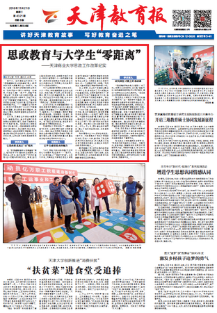 11月21日,《天津教育報》頭版頭條以“思政教育與大學生‘零距離’——天津商業大學思政工作改革紀實”為題報道我校思想政治工作改革情況。