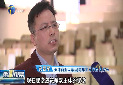 3月30日晚,天津電視臺新聞頻道《第一觀察》欄目以“明德入心 立德樹人”為題,深度報道了天津市大中小學校思政課開展情況。記者深入我校馬克思主義學院副教授王坤和青年教師李欣的課堂,并對教學副院長安晉軍進行采訪,對馬克思主義學院的教學改革成果進行了生動展示(視頻約在7分17秒處開始)。欄目組還深入到校黨委書記史習紅為學生講授第一課的現場,對授課情況進行報道。