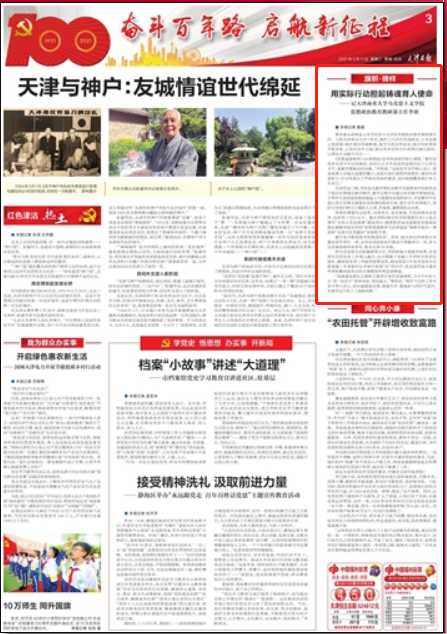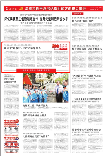5月12日,《今晚報》2版以“堅守教育初心 踐行鑄魂育人”為題報道了我校馬克思主義學院思政課教師李欣。5月11日,《天津日報》3版以“用實際行動擔起鑄魂育人使命”為題報道了我校馬克思主義學院思想政治教育教研部主任李欣。4月30日,津云以“李欣:要讓我的思政課在學生中‘喜聞樂見’”為題視頻報道我校思政課教師李欣。學習強國、今日頭條、央視頻、新華網客戶端同步轉發。