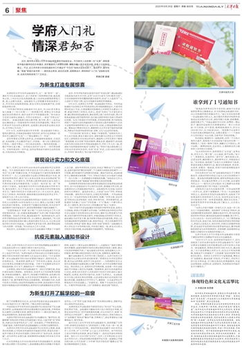 除了花樣繁多的大禮包,也有些學校重在通過錄取通知書為2020級新生打開了解學校、了解天津的全新視窗。