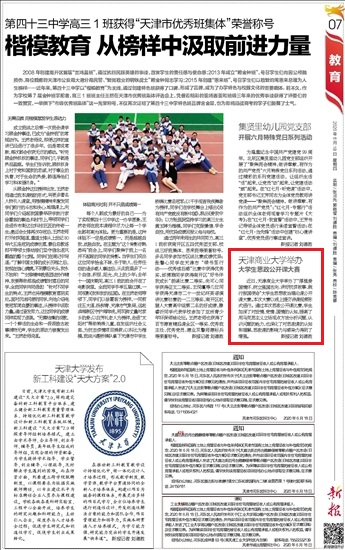 6月18日,《每日新報》7版以“天津商業大學舉辦大學生思政公開課大賽”為題,報道了我校舉辦了“厚植愛國情懷、樹立強國志向、講好抗疫故事、踐行報國使命”大學生思想政治理論課公開課大賽。大賽以線上提交講課視頻形式進行。通過本次思政公開課比賽,學生加深了對世情、黨情、國情的認知,提高了用馬克思主義立場觀點方法分析問題、認識問題的能力,也深化了對思政課的認知和理解,思政課的影響力與感染力得到了增強。