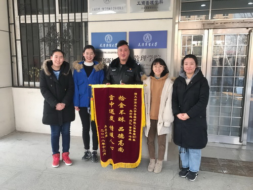 “我在馬路邊撿到一分錢,把它交到警察叔叔手里面。叔叔拿著錢,對我把頭點……”這首兒時常常掛在嘴邊哼唱的歌謠,讓我們從小就懂得了撿了東西要歸還的道理。拾金不昧,仿佛是一件不起眼的小事,卻蘊含了中華民族的傳統美德,那些拾金不昧的人,拾起的不僅是“金”,更是他們如金子般閃閃發光的心靈,讓我們感受到美德的可貴。日前,我校管理學院工商管理類1801班趙軒逸、劉憶、馮緣、董金玉四名同學就將這個口耳相傳的品德付諸于實踐當中。她們及時報警,將撿到的證件、銀行卡等貴重物品及近1萬元現金及時歸還失主,用實際行動彰顯出天商人的社會擔當。
