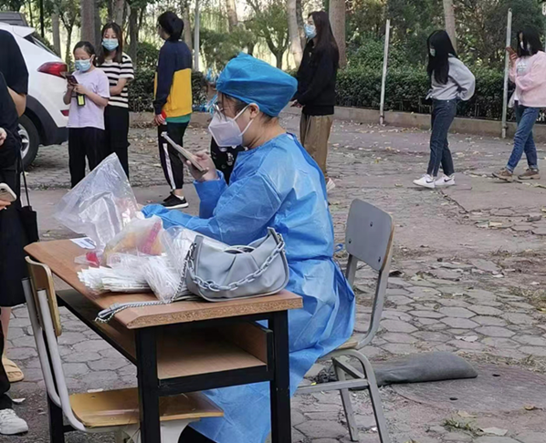 為配合學(xué)校做好全市大篩和常態(tài)化核酸檢測工作,韋姍姍在收到學(xué)校征集核酸檢測采集信息志愿者的通知時,她積極報名參加志愿者服務(wù)活動。在校園疫情防控工作中,她主要負(fù)責(zé)對所在樓棟進(jìn)行核酸檢測掃碼信息登記、維護(hù)現(xiàn)場秩序等工作,還協(xié)助站長對站點進(jìn)行志愿者的招募和培訓(xùn)。投身于學(xué)校疫情防控工作當(dāng)中,用實際行動守護(hù)學(xué)校疫情防控陣地。(審稿:劉桂濤)