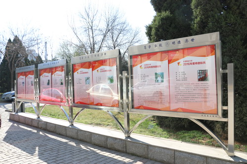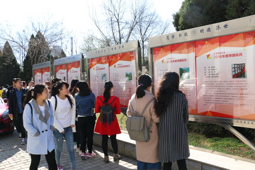 3月25日,“2016年度師德標兵”風采展在一號教學樓前宣傳櫥窗展出。