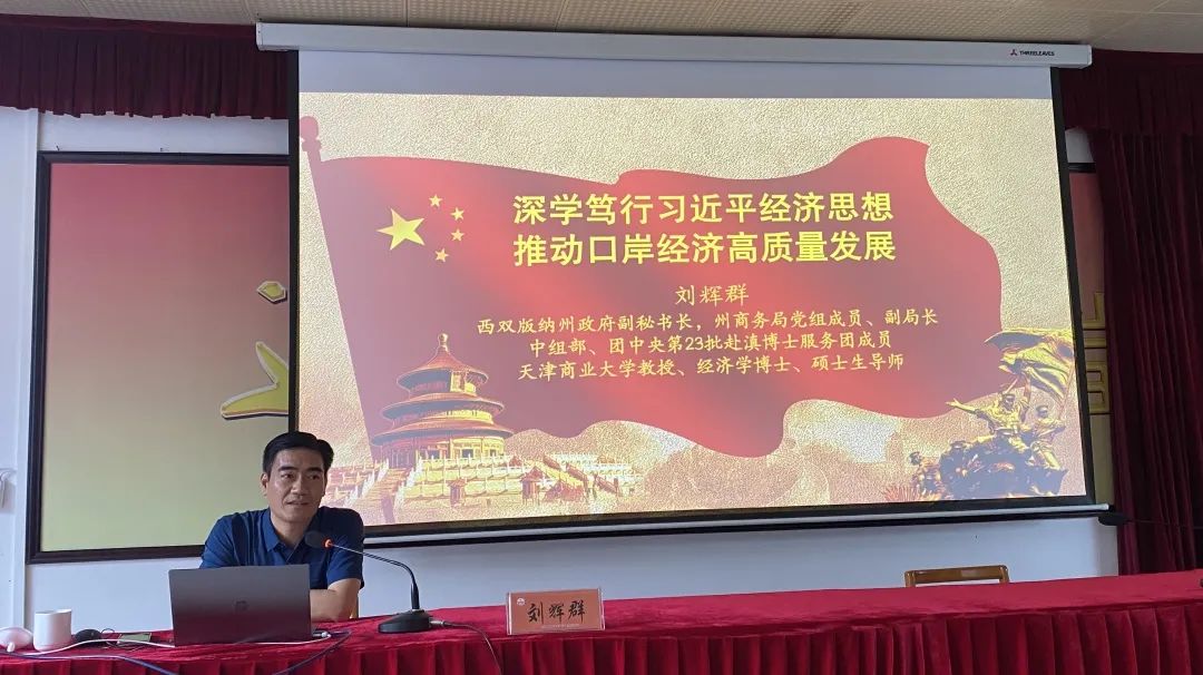 劉輝群充分發(fā)揮自身專業(yè)特長(zhǎng)優(yōu)勢(shì),以培訓(xùn)講座、智力服務(wù)、設(shè)立專家工作站等方式,宣傳先進(jìn)思想,提供智力服務(wù),努力做好提升干部能力本領(lǐng)的幫帶者。經(jīng)州委組織部推薦,劉輝群參加第二批云南省級(jí)云嶺先鋒講師團(tuán),受邀做客云南省社科聯(lián)聯(lián)合新華網(wǎng)推出的《用實(shí)踐回答》社科專家田野調(diào)查新媒體視頻節(jié)目,通過(guò)田野調(diào)查生動(dòng)講述理論實(shí)踐故事,深刻闡釋習(xí)近平新時(shí)代中國(guó)特色社會(huì)主義思想的精髓要義。在第二批主題教育期間,劉輝群主動(dòng)送課上門,先后為西雙版納州各企事業(yè)單位、州“青年馬克思主義者培養(yǎng)工程”培訓(xùn)班及2023年景洪市對(duì)外投資貿(mào)易政策業(yè)務(wù)培訓(xùn)班作《深學(xué)篤行習(xí)近平經(jīng)濟(jì)思想 推動(dòng)海關(guān)工作高質(zhì)量發(fā)展》《指引中國(guó)邁向現(xiàn)代化強(qiáng)國(guó)的發(fā)展密碼》《深學(xué)篤行習(xí)近平經(jīng)濟(jì)思想 持續(xù)推動(dòng)營(yíng)商環(huán)境優(yōu)化》等專題輔導(dǎo)報(bào)告。
