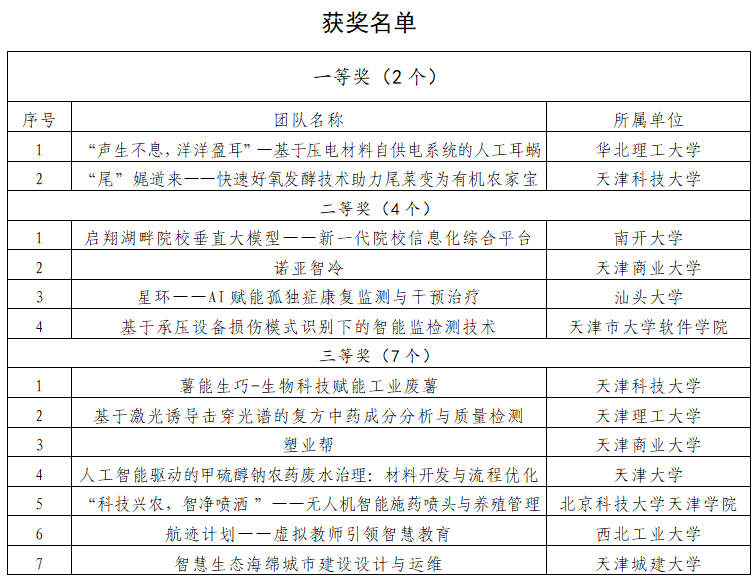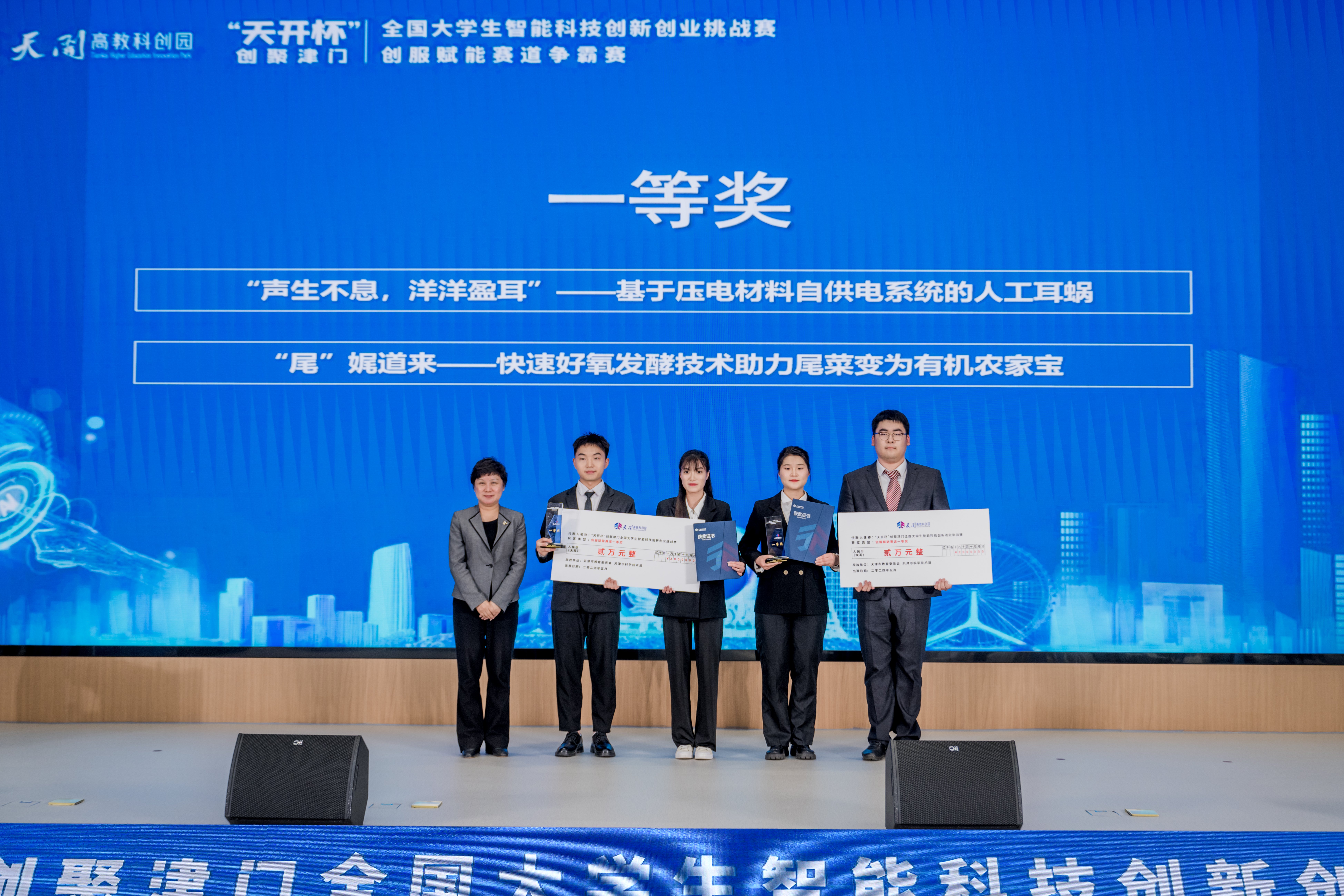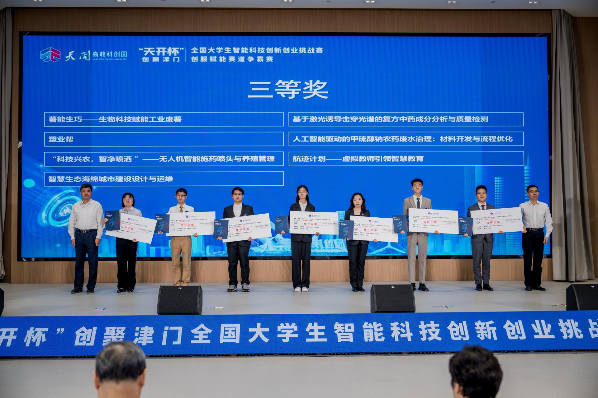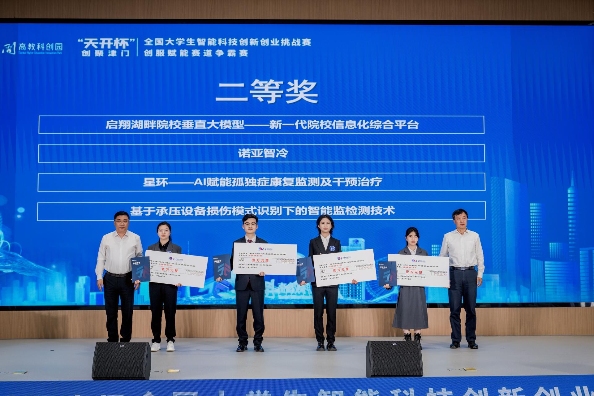 5月12日,我校承辦的“天開杯”創聚津門全國大學生智能科技創新創業挑戰賽創服賦能賽道總決賽在天開園舉辦。天津市副市長張玲出席并頒獎。