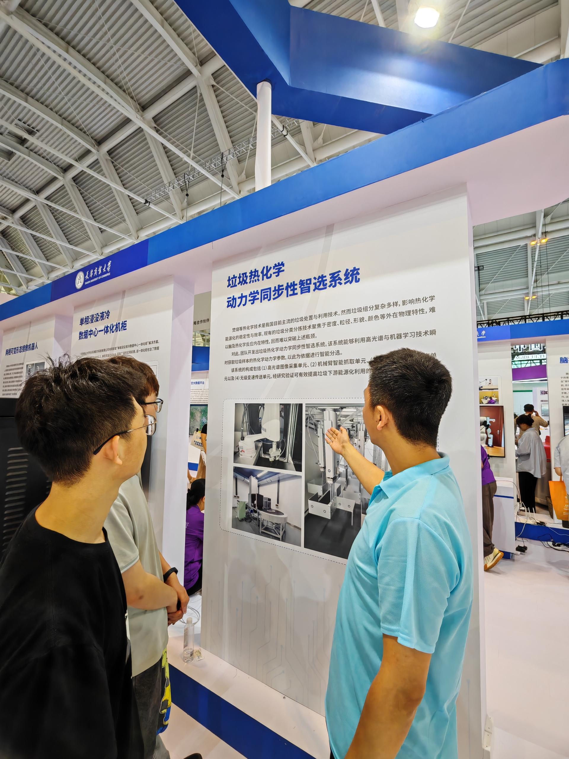由副校長陳冠益教授帶領的環境能源+X創新實驗室團隊的“垃圾熱化學動力學同步性智選系統”科研成果亮相大會,該技術利用高光譜與機器學習技術瞬時獲取垃圾樣本的熱化學動力學參數,以此為依據進行智能分選,有效提高垃圾下游能源化利用的效率。