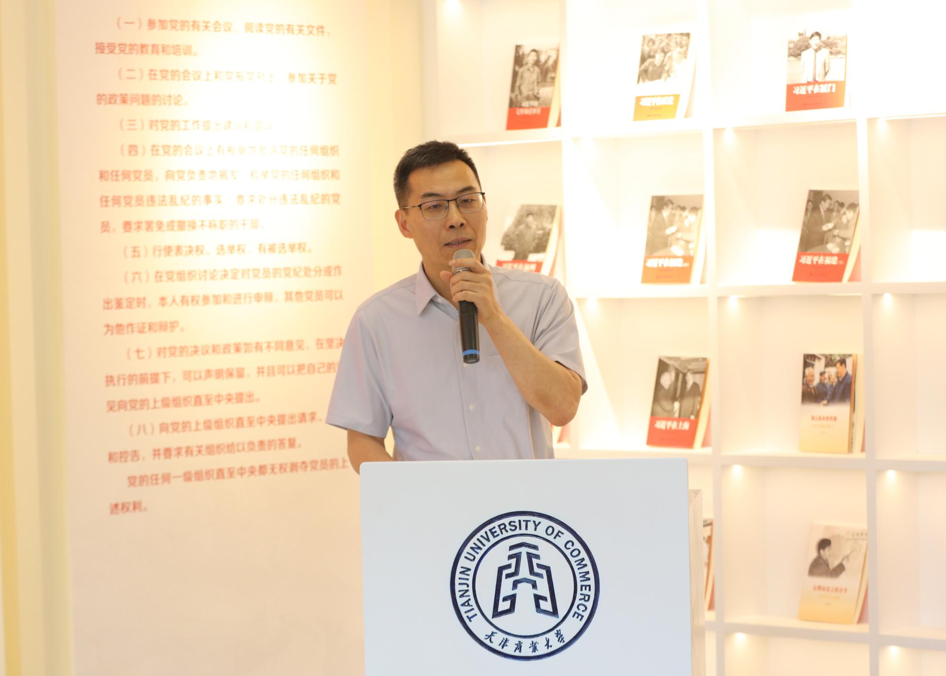 7月3日,天津市黨的建設與黨史故事思政課重點實驗室在天津商業大學建成,校黨委書記張亞、市教育兩委學生思想教育與管理處處長楊明共同為實驗室揭牌。北辰區教育局副局長劉福穎,紅橋區教育局副局長李艷、學生思想教育與管理科科長楊麗姝,瑞景中學德育副校長何曉柱等大中小思政課一體化合作單位領導,黨委辦公室(校長辦公室)、黨委組織部、黨委宣傳部、黨委統戰部、黨委教師工作部、黨委學工部、黨委安全工作部、教務處、研究生處、團委等相關部門負責同志,馬克思主義學院領導班子、師生代表參加揭牌儀式。儀式由馬克思主義學院黨委主要負責同志主持。