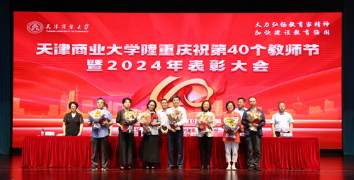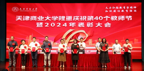 王立云宣讀《從事教育工作滿三十年的教師和退休人員名單》。齊恩平宣布市級以上榮譽獲獎名單,宣讀《天津商業大學關于表彰優秀教師、優秀教育工作者的決定》。號召全體教師以受表彰的教師為榜樣,不忘立德樹人初心,以更加堅定的信念,更加飽滿的熱情,投身于教育事業之中,當好學生成長的引路人。與會校領導為從教三十年教職工、退休人員、優秀教師、優秀教育工作者代表頒發證書和紀念品。