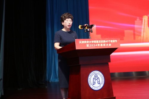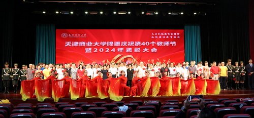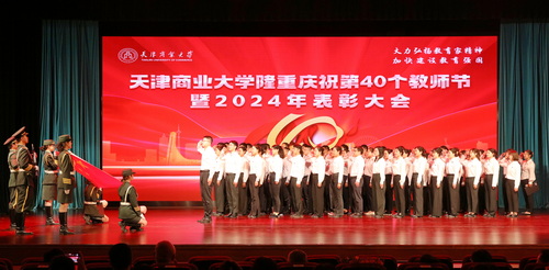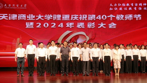 為弘揚教育家精神,落實立德樹人根本任務,做好師德傳承,營造濃厚的尊師重教氛圍,9月10日上午,天津商業大學慶祝第40個教師節暨2024年表彰大會在科學會堂隆重舉行。校黨委書記張亞發表講話,校黨委副書記、校長葛寶臻主持會議,校黨委副書記王立云,副校長齊恩平、黃鳳羽、陳冠益出席。各部門、各學院主要負責同志及教職工代表、學生代表600余人參會。