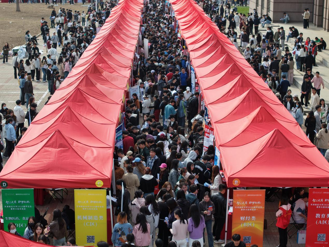 為搶抓春季促就業(yè)關鍵期,4月9日下午,由學校就業(yè)指導中心與各二級學院聯(lián)合舉辦的天津商業(yè)大學“智匯天商 職夢起航”2025屆畢業(yè)生春季大型雙選會在圖書館南廣場舉辦。校黨委書記張亞,校黨委副書記、校長陳冠益,校黨委副書記崔強,副校長齊恩平來到現(xiàn)場指導工作,并與用人單位和畢業(yè)生交流。各學院領導班子成員、校院兩級就業(yè)指導教師全程參加,為畢業(yè)生提供全方位就業(yè)指導服務。