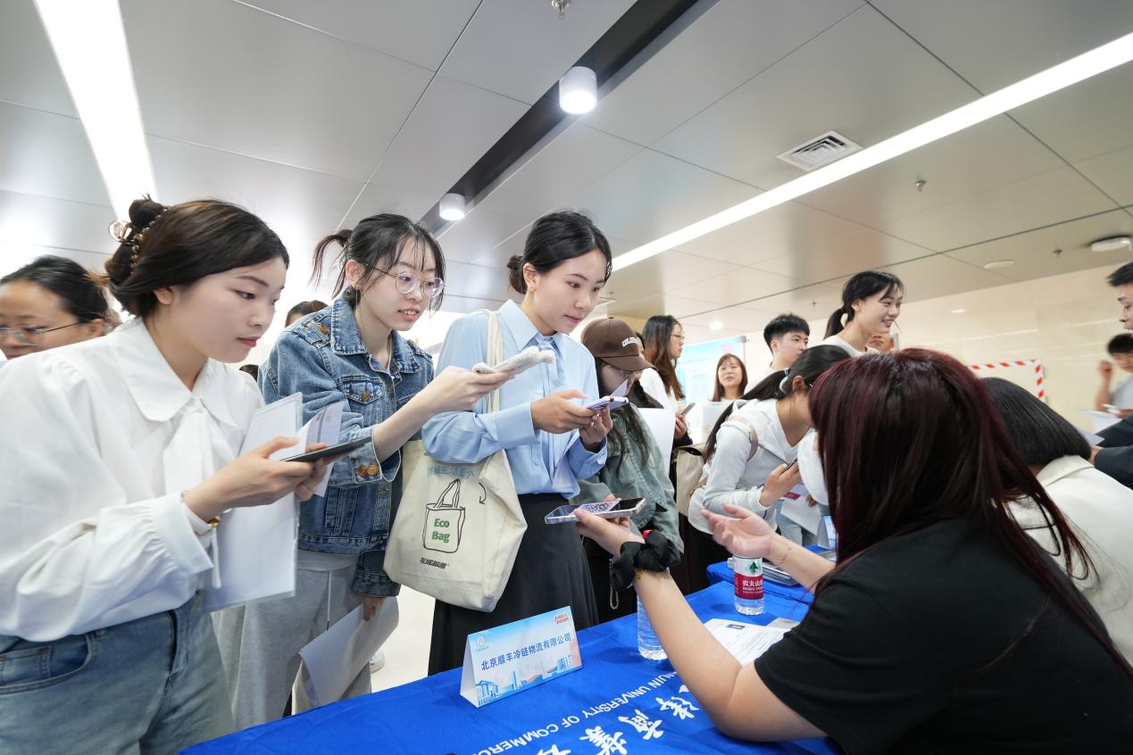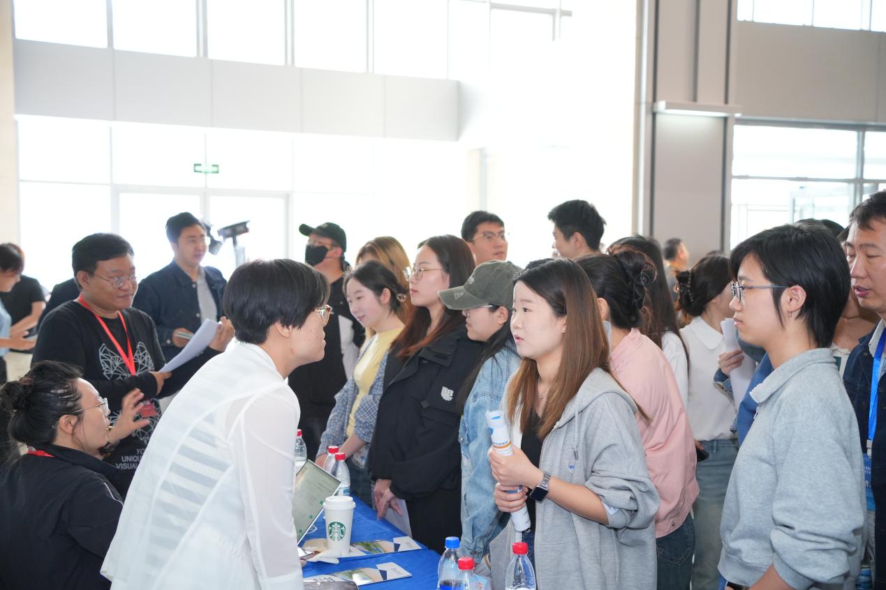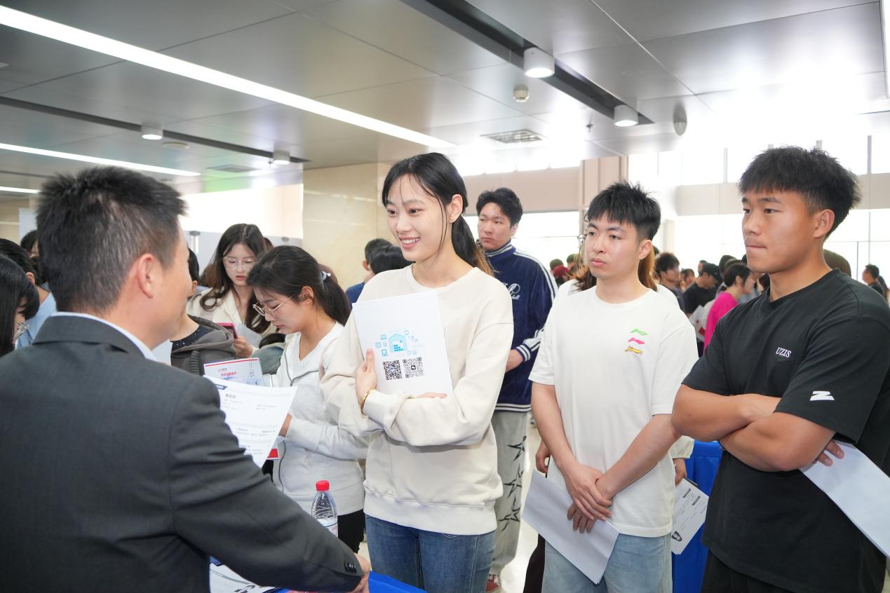 現場氣氛高漲、人潮涌動,學生們穿梭于各個展位之間,尋覓心儀崗位,積極與企業交流溝通。44 家校友企業精心籌備、熱情參與,帶來近600個優質招聘崗位,同時還依托校友企業的直播基地開展線上帶崗。招聘崗位涵蓋財經、管理、機械制造等行業領域,為畢業生提供了廣闊的就業選擇空間。據統計,線上線下參會學生900余人,現場投遞簡歷1822份。