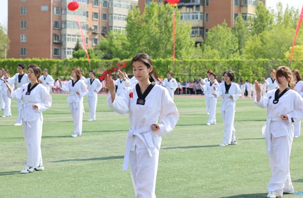 開幕式環節,國旗護衛隊邁著整齊劃一的步伐,護送國旗入場,在雄壯的國歌聲中,五星紅旗冉冉升起。裁判員方隊眼神專注,以公正、專業的態度為賽事保駕護航。各學院方隊口號嘹亮,展示著不同青春風采。文藝表演環節,啦啦隊舞步整齊劃一,綻放青春韻律;武術表演身法飄逸,騰挪閃轉盡顯風范;跆拳道表演英姿颯爽,展現武者斗志。