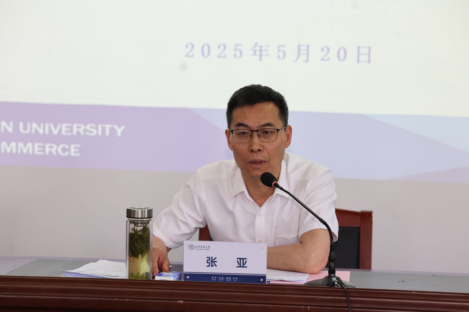 張亞在講話中指出,要深刻認識當前就業形勢,全面落實上級部署,搶抓畢業生離校前就業工作關鍵期、黃金期,科學謀劃、統籌推進,全力促進畢業生高質量充分就業。一要進一步強化專項認知。切實增強做好就業工作的責任感、使命感,從社會需求端倒推學校教育教學改革,深化“招生-培養-就業”聯動,提升辦學質量。二要進一步強化全員意識。緊密結合“就業思政”體系建設,進一步完善“學校統籌、學院主抓、部門協同、全員參與”的就業工作機制,全員、全過程、全方位做好畢業生就業服務工作。三要進一步強化工作舉措。深入挖潛拓展就業崗位資源,密切聯系校友企業,探索研究設置校內崗位,拓寬出國留學渠道,千方百計助力畢業生多元化就業。四要進一步強化責任擔當。深入落實“一把手”工程,夯實全員促就業工作責任,強化安全防范意識,確保就業數據安全,系統做好2025屆畢業生就業工作。