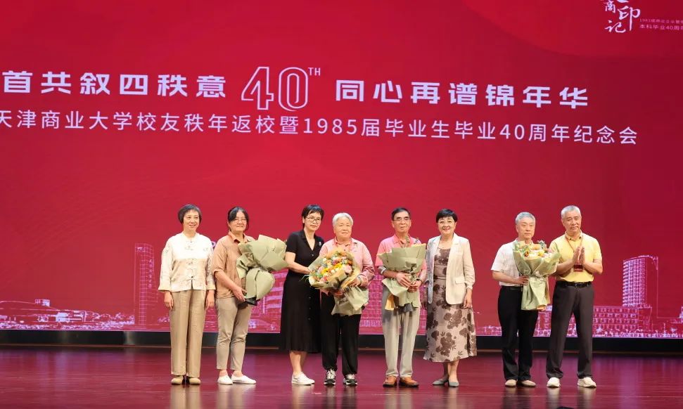 紀(jì)念會(huì)上,1985屆畢業(yè)生校友為出席活動(dòng)的老教師獻(xiàn)上鮮花,表達(dá)著對(duì)母校和恩師的敬意與祝福。