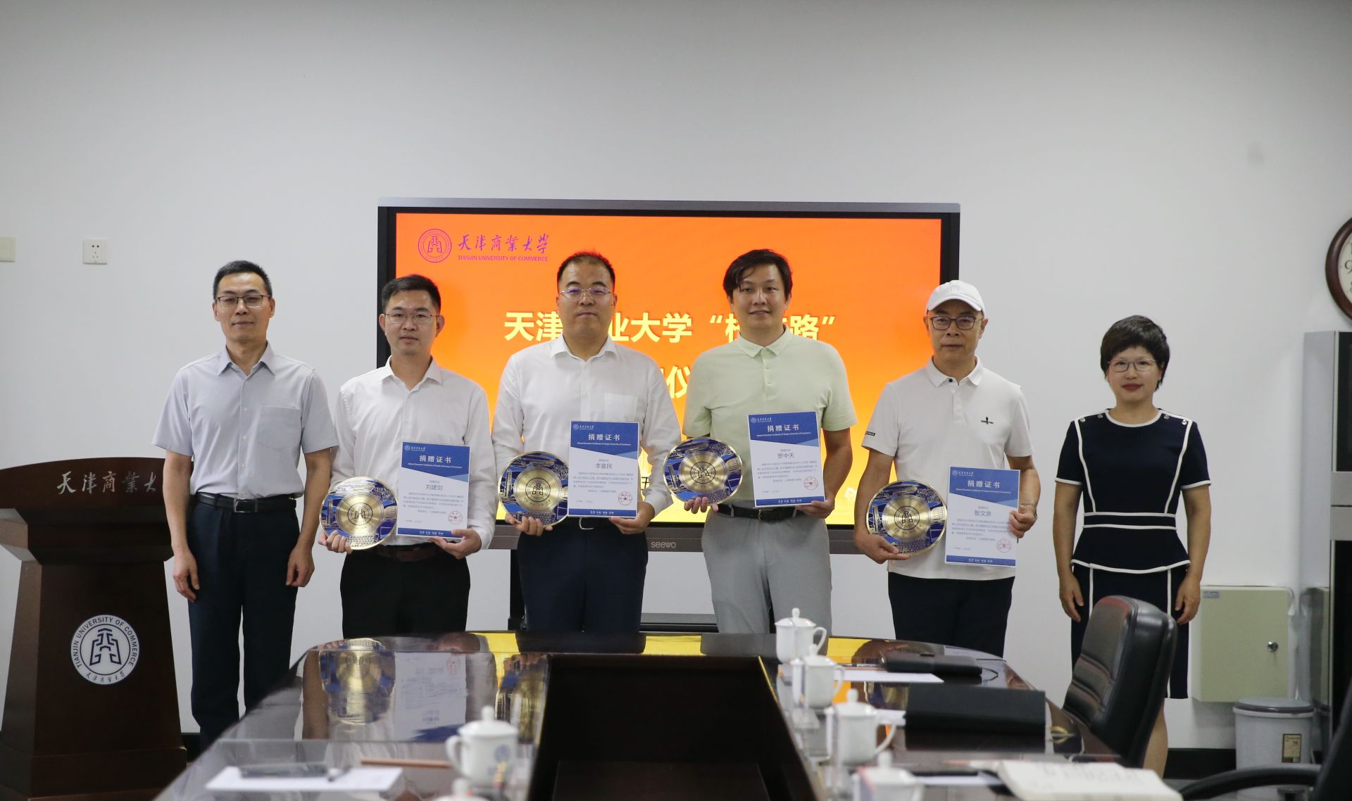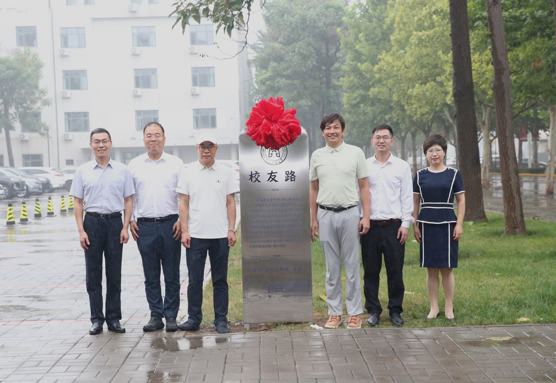 儀式上,校領(lǐng)導為校友代表頒發(fā)捐贈證書和紀念品,并與校友共同為校友路揭牌。