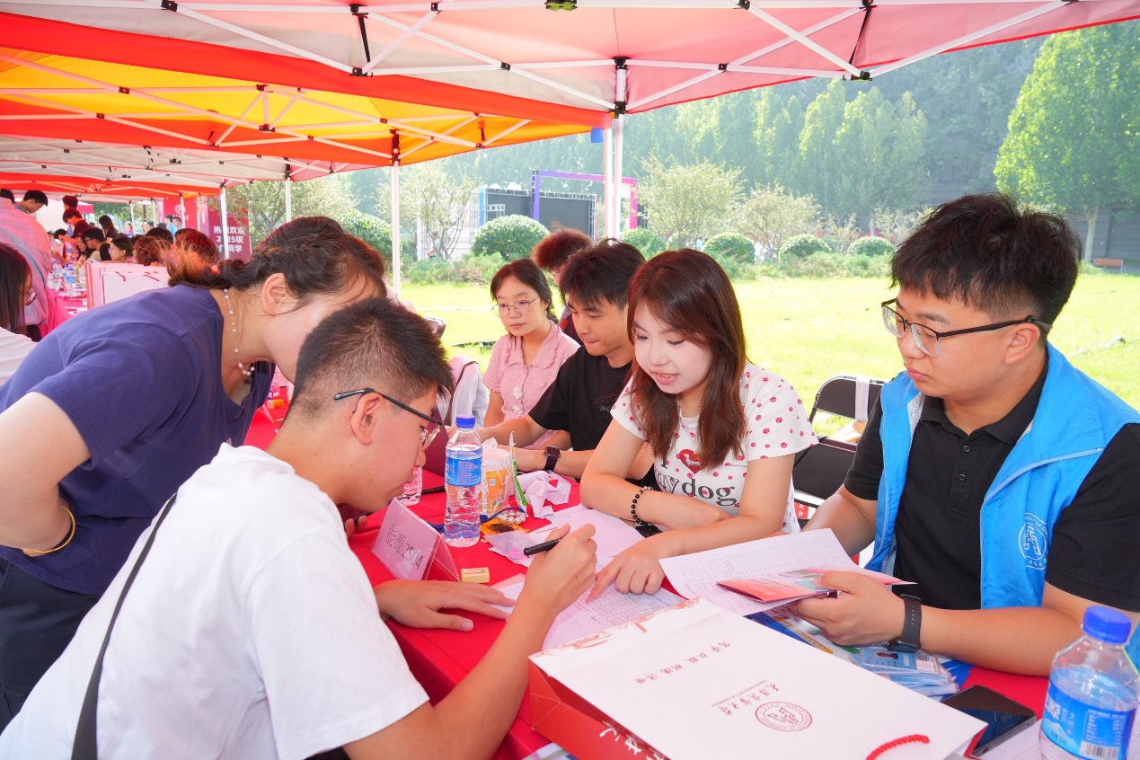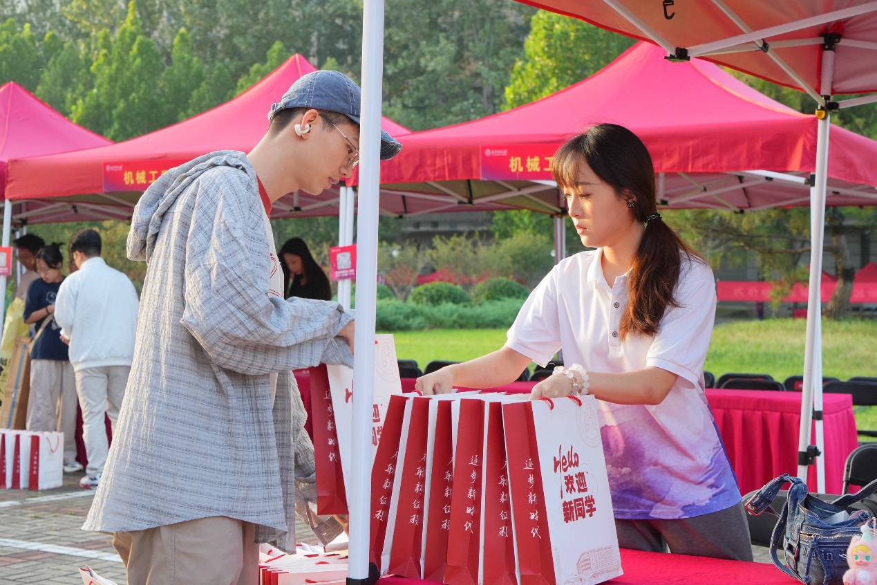 走進煥然一新的天商校園,“歡迎新同學,筑夢新起點”“新宿舍,新起點,2025級萌新,歡迎入住!”“你來自四方萬里,我在天商等你”等迎新橫幅隨處可見,營造出熱烈而溫馨的迎新氛圍。學校在集中報到處、主干道、宿舍區等點位精心設置了由全體新生姓名組成的姓名墻、“你好新同學”拱門等多處特色打卡裝置,吸引了眾多新生及家長駐足拍照,留下成為“新天商人”的第一張珍貴影像。各學院報到點位同樣裝飾得各具特色,熱情洋溢的師生志愿者穿梭其間,成為校園里最動人的風景。