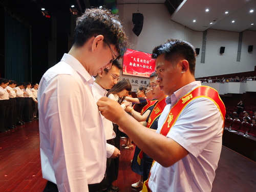 獲獎(jiǎng)教師代表經(jīng)濟(jì)學(xué)院孫云鵬和理學(xué)院狄佩佩分別《以科研之筆繪育人藍(lán)圖以雙碳之責(zé)踐師者擔(dān)當(dāng)》和《以師者之愛(ài) 照亮青春之路》為題作主題分享。師德標(biāo)兵為新入職教師代表佩戴校徽,全體新入職教師面對(duì)國(guó)旗莊嚴(yán)宣誓,管理學(xué)院米學(xué)嬌代表新入職教師發(fā)言。