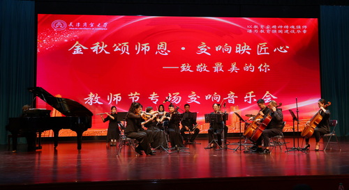 表彰大會(huì)結(jié)束后,學(xué)校特邀專業(yè)樂(lè)團(tuán)藝術(shù)家,為全體教職工獻(xiàn)上了一場(chǎng)以“金秋頌師恩 交響映匠心——致敬最美的你”為主題的教師節(jié)專場(chǎng)音樂(lè)會(huì)。藝術(shù)家們傾情演繹了《春之聲圓舞曲》《愛(ài)的致意》《我和我的祖國(guó)》等十二首中外經(jīng)典名曲,以悠揚(yáng)的旋律致敬在各個(gè)崗位上默默奉獻(xiàn)、辛勤耕耘的教職員工,表達(dá)深深的敬意與感謝。整場(chǎng)音樂(lè)會(huì)情感真摯、熱烈,營(yíng)造了尊師重教的良好氛圍,增強(qiáng)了校園文化凝聚力。音樂(lè)會(huì)在全場(chǎng)齊聲高唱《歌唱祖國(guó)》的激昂歌聲中圓滿落幕。