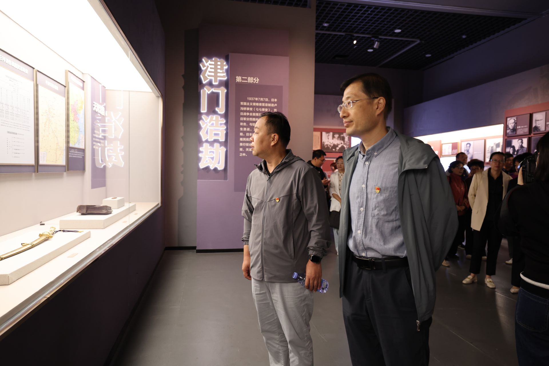 展覽由“奮起救亡”“津門浩劫”“市區抗戰”“盤山烽火”“贏得勝利”“抗戰英烈”六個部分組成,通過豐富的文物展品和文獻資料,生動展現了天津人民在抗戰中不屈不撓的精神風貌和為民族解放作出的卓越貢獻。大家跟隨講解員的引導,依次參觀了展出的珍貴文物、歷史照片和影像資料,從支援長城抗戰,到收復察北失地,從盤山抗日根據地的斗爭史實,到平津學生南下請愿的愛國壯舉……一件件展品、一幕幕場景,讓黨員干部們深刻感受到革命先輩的堅定信仰和家國情懷,被那段波瀾壯闊的歷史所震撼,不時交流心得體會。