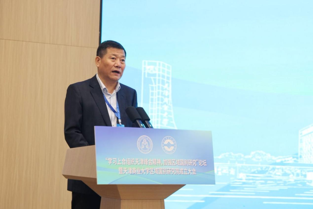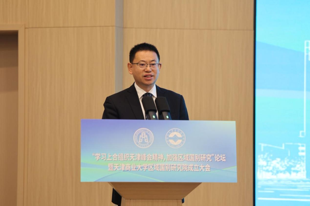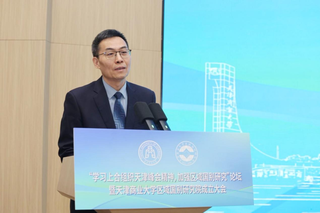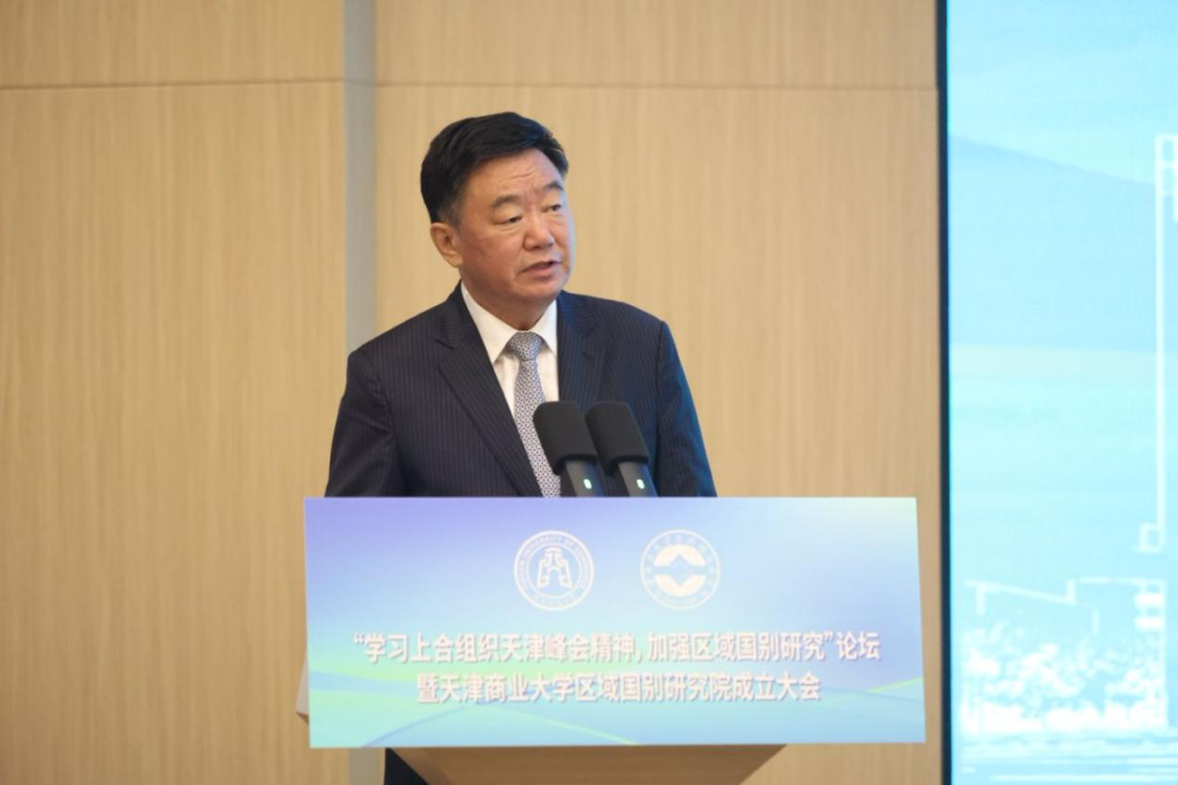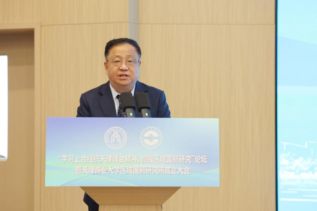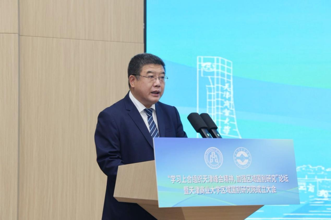張亞書記對各位領導、專家學者的蒞臨,表示最熱烈的歡迎和最誠摯的感謝。他指出,當前的國際國內形勢為區域國別研究提出新的要求、新的機遇,區域國別研究院的成立,是學?;貞獣r代需要和現實需求,貫徹落實上合組織天津峰會精神,主動服務國家戰略,努力為中國式現代化貢獻“天商力量”的一個重要舉措和一次積極實踐。區域國別研究院依托學校豐富的對外合作交流經驗,是對長期以來分散在經濟學、管理學、法學、外國語言文學等學科的區域國別研究力量的系統性整合。在未來,我們會努力將研究院打造成為在區域國別研究領域具有重要影響力的商貿研究樞紐、高端決策智庫、人文交流平臺和人才培養高地。