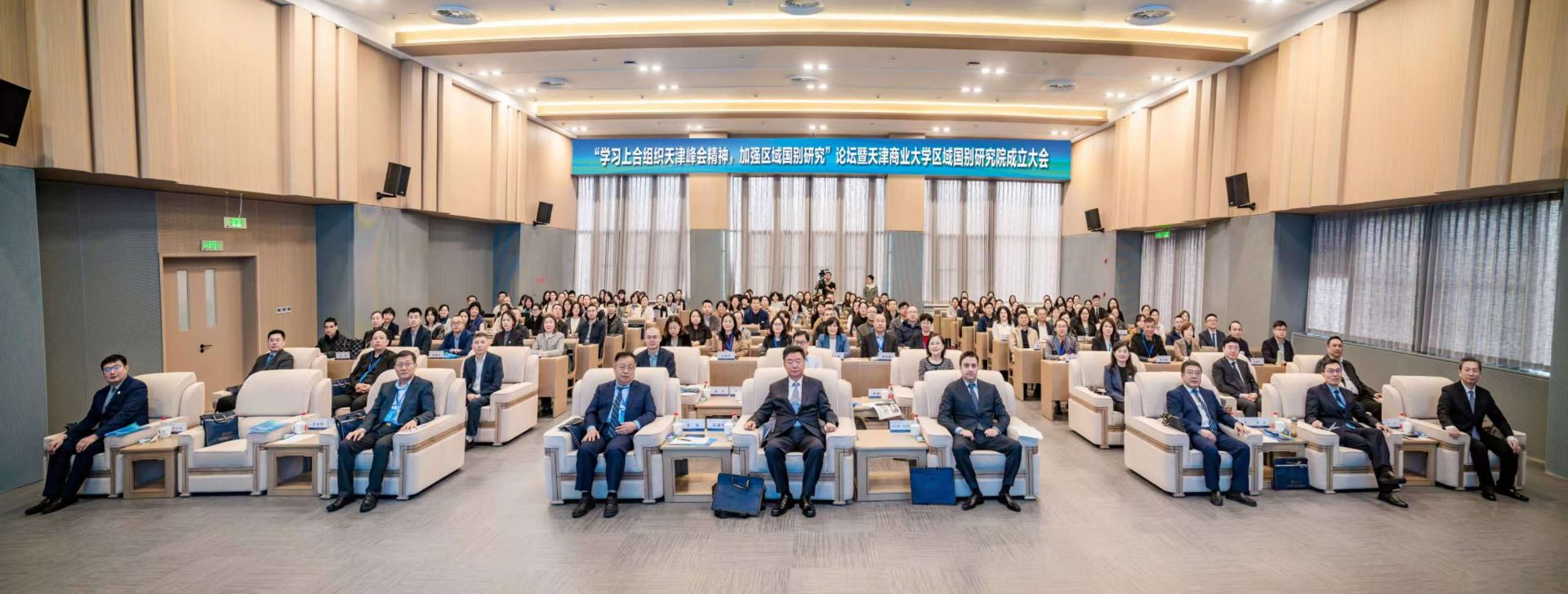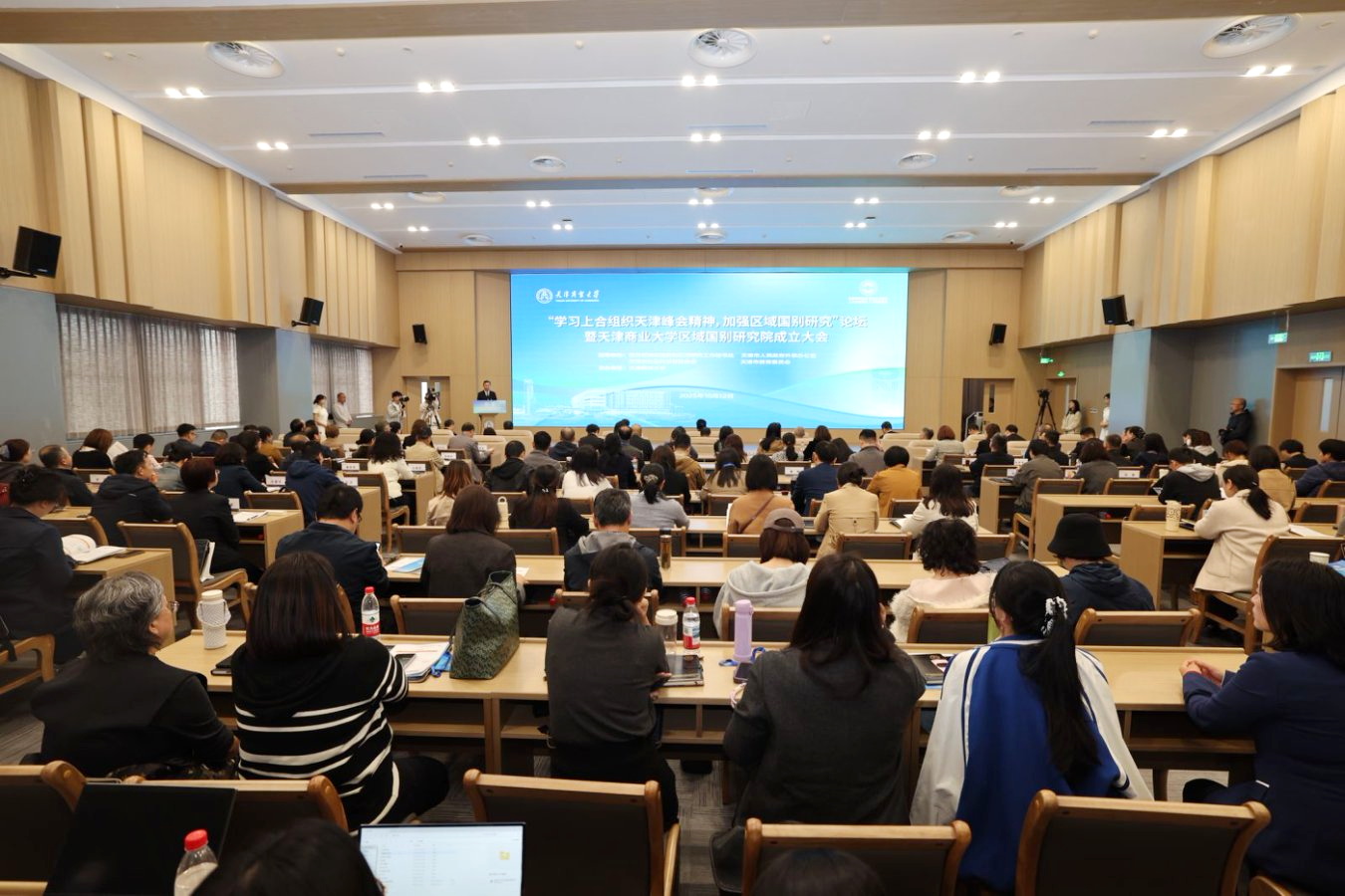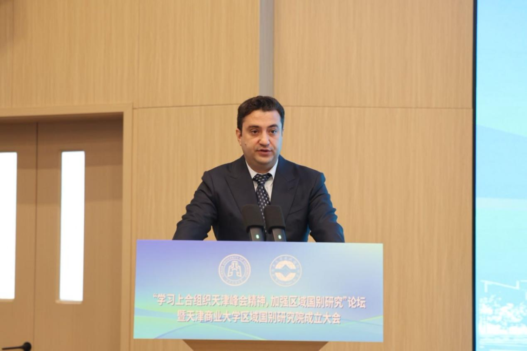 10月12日,天津商業大學在學術會議中心第一報告廳隆重召開“學習上合組織天津峰會精神、加強區域國別研究”論壇暨天津商業大學區域國別研究院成立大會。中國世界貿易組織研究會會長、前駐岡比亞大使馬建春,亞美尼亞共和國經濟與商務參贊(Ghazaryan Koryun)卡扎良·科爾倫,教育部國別和區域研究工作秘書處主任、北京語言大學國別和區域研究院院長羅林教授,天津市人民政府外事辦公室副主任、一級巡視員趙劍嶺,天津市社會科學界聯合會專職副主席袁世軍,天津市教育委員會科學技術與研究生工作處處長楊明海應邀出席。中山大學區域國別研究院院長陳杰教授、天津大學全球南方研究院執行院長王戰教授、上海對外經貿大學區域國別研究院執行院長張蔚磊教授,以及來自天津各高校的專家學者參加會議。校黨委書記張亞出席并致辭,副校長余江教授主持會議并作總結發言。亞美尼亞旅游推廣中心主席楊軍、外語教學與研究出版社、北京外研在線數字科技有限公司、科大訊飛股份有限公司、北京世紀超星信息技術發展有限公司、北京全球語通教育科技有限公司等企業代表、相關部門及學校各學院負責人、區域國別研究院師生代表約200人參加會議。