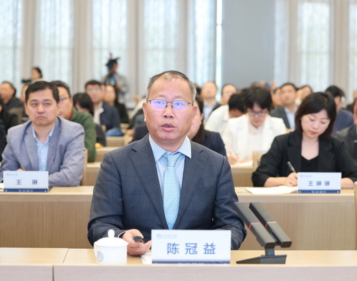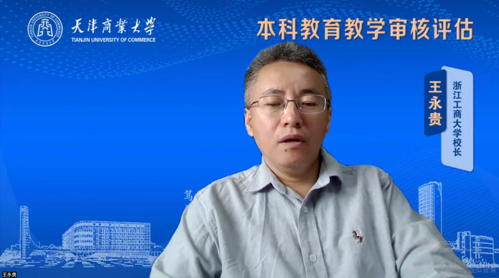 陳冠益代表學校作審核評估自評工作匯報。他從歷史沿革、校區建設、師資隊伍、學科引領、專業布局、國際合作六個維度介紹了學?;厩闆r,展現學校辦學基礎與綜合實力;隨后,圍繞本科教育教學改革的核心方向,從黨建引領筑牢育人根基、思政鑄魂培育時代新人、商科彰顯塑造育人特色、商工融合拓展學科優勢、雙創賦能貫通人才培養、產教協同共育卓越人才六個重點方面,全面闡述本科教育教學創新舉措與實踐成效。