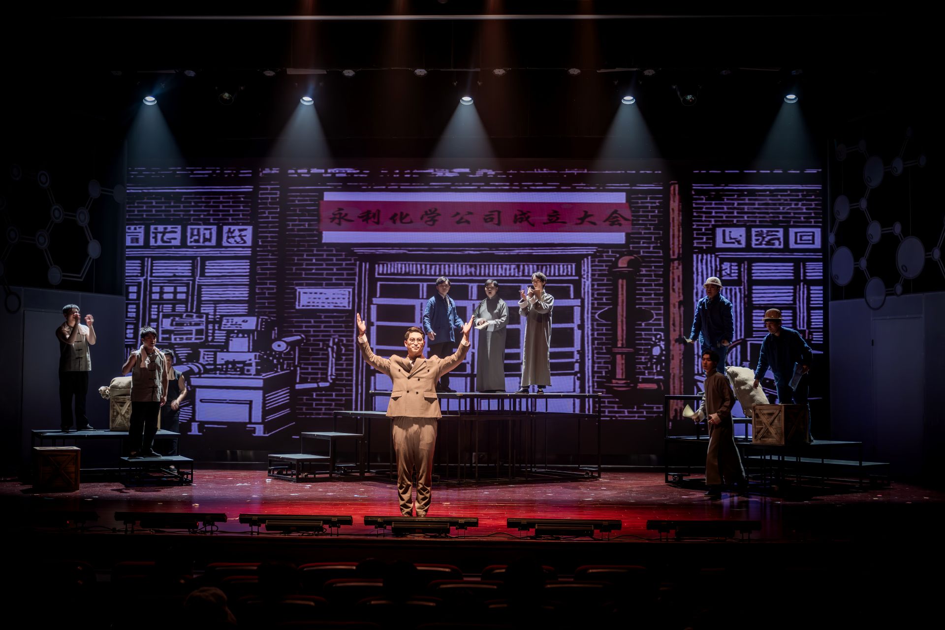 話劇全景式地展現(xiàn)了中國近代民族化學工業(yè)奠基人范旭東先生波瀾壯闊的一生。1900年維新變法失敗后,范旭東追隨兄長范源廉一同赴日留學,求學期間,他目睹了日本工業(yè)的強盛,投身化學專業(yè)學習,立志以實業(yè)救國、科學救國。辛亥革命后,范旭東攜妻子許馥回到了闊別十余年的祖國,在天津塘沽創(chuàng)辦中國第一家精鹽廠。久大精鹽廠成功后,他迅速投身制堿工業(yè),創(chuàng)辦永利堿廠,歷經八年技術攻堅,與侯德榜等人制造出“紅三角”牌純堿,在萬國博覽會上斬獲金獎。征程未止,范旭東成立中國第一家化工研究機構“黃海化學工業(yè)研究社”,建立南京硫酸錏廠,制訂“四大信條”企業(yè)文化,他創(chuàng)辦的永利、久大、黃海被稱為“永久黃”團體,錏廠被譽為“遠東第一大廠”。然而,錏廠建成同年,南京淪陷,錏廠被炸毀,塘沽工廠被日軍強占,范旭東帶領“永久黃”團隊西遷,重建西南化學基地。生命最后的歲月,他仍四處奔波,籌劃建設“十廠”計劃,直至1945年病逝于重慶,毛澤東親自為其題寫挽聯(lián)“工業(yè)先導,功在中華”。范旭東不僅建起了民族化學工業(yè)的基石,更鑄就了中國企業(yè)家自強不息的精神豐碑。全劇通過范旭東的艱難創(chuàng)業(yè)歷程,展現(xiàn)了他畢生以“四大信條”為本,踐行“商之大者,為國為民”理念的崇高境界。