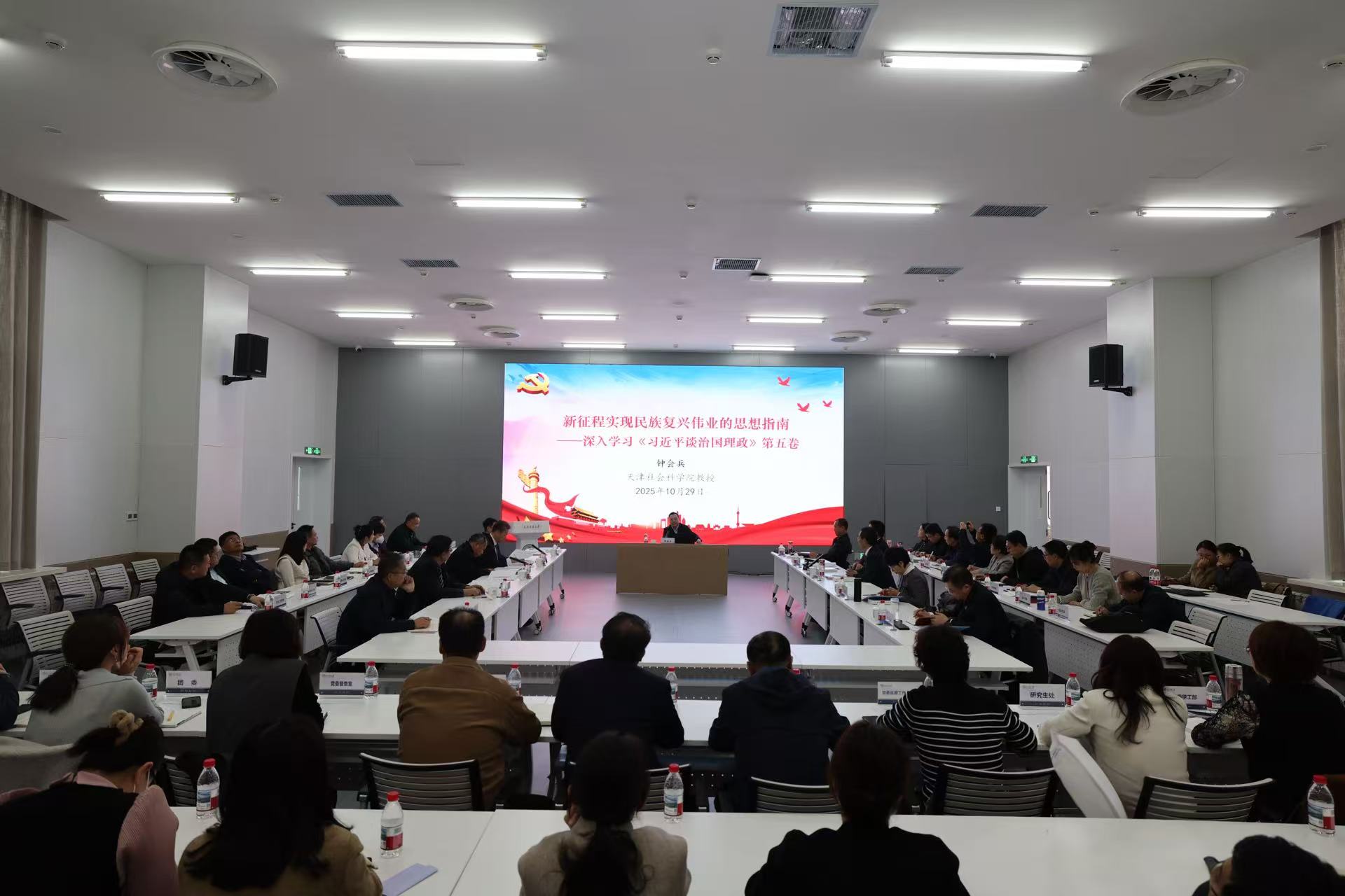 張亞指出,《習近平談治國理政》第五卷集中展現(xiàn)了馬克思主義中國化時代化的最新成果,系統(tǒng)反映了習近平新時代中國特色社會主義思想不斷發(fā)展的豐富內涵,科學回答了中國之問、世界之問、人民之問、時代之問,為我們應對風險挑戰(zhàn)、推進事業(yè)發(fā)展提供了根本遵循和行動指南。學好用好《習近平談治國理政》第五卷是當前和今后一個時期的重大政治任務,廣大干部師生要把學習《習近平談治國理政》第五卷同學習貫徹黨的二十屆四中全會精神結合起來,同深入貫徹落實習近平總書記視察天津重要講話精神和對天津工作一系列重要指示要求結合起來,做到原原本本學、融會貫通學、聯(lián)系實際學,圍繞學校第三次黨員代表大會確定的目標任務,切實將學習成果轉化為推動學校高質量發(fā)展的實際成效,高質量推進特色鮮明高水平商業(yè)大學建設。