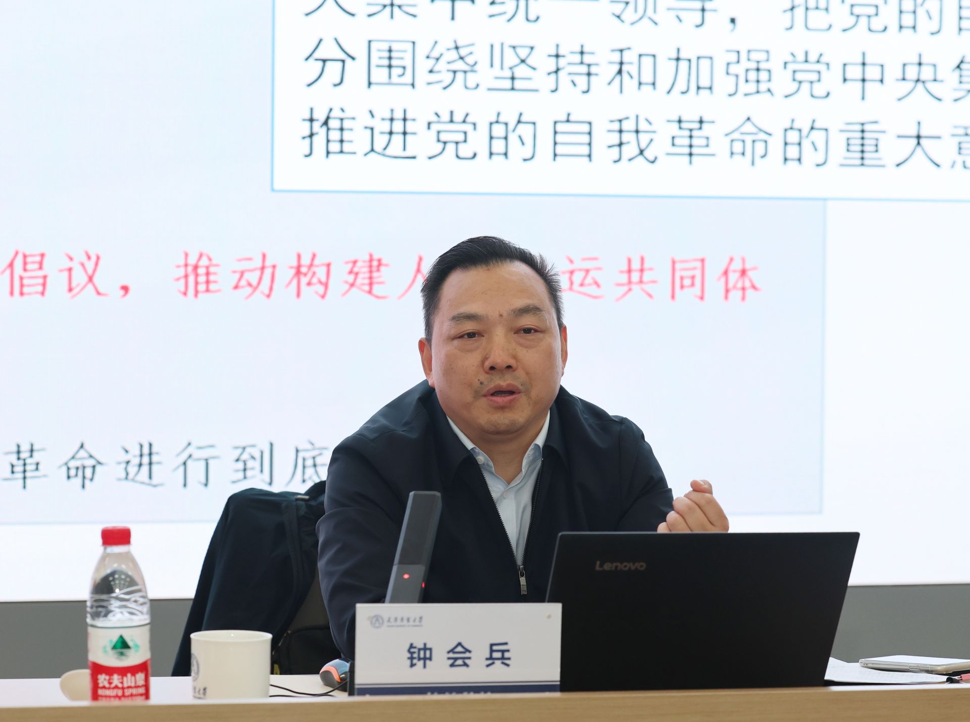 鐘會兵圍繞“新征程實現(xiàn)民族復興偉業(yè)的思想指南——深入學習《習近平談治國理政》第五卷”主題,從深刻把握第五卷的豐富內容和內在邏輯、深刻把握第五卷的重大理論與實踐創(chuàng)新、深刻把握學習貫徹第五卷的實踐要求三個方面,對《習近平談治國理政》第五卷作了系統(tǒng)講解和深入闡述。他指出,《習近平談治國理政》第五卷是全面系統(tǒng)反映習近平新時代中國特色社會主義思想最新成果的權威著作。要堅持理論聯(lián)系實際的馬克思主義學風,更好用習近平新時代中國特色社會主義思想統(tǒng)一思想、統(tǒng)一意志、統(tǒng)一行動,凝聚起以中國式現(xiàn)代化全面推進強國建設、民族復興偉業(yè)的磅礴力量。
