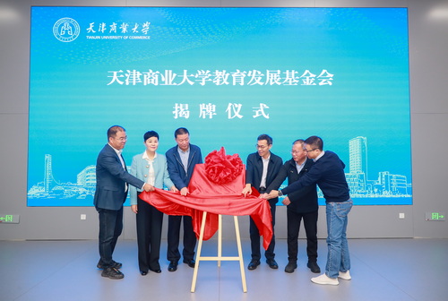 在與會人員的共同見證下,校黨委書記張亞,校黨委副書記、校長陳冠益和捐贈校友代表宋益群、肖友元,北京校友會會長劉征、天津校友會會長李富民共同為基金會揭牌。