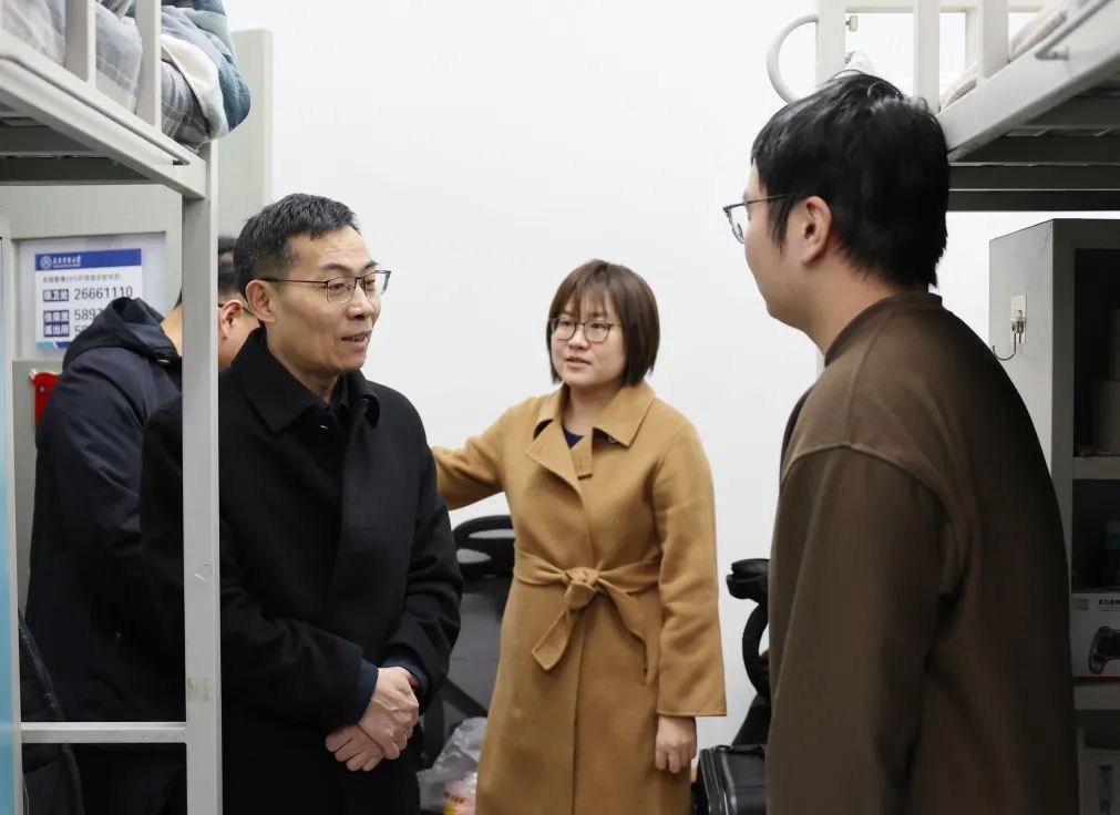 為保障新學(xué)期工作平穩(wěn)有序,校黨委書記張亞,校黨委副書記、校長(zhǎng)陳冠益,校黨委副書記王立云、崔強(qiáng),副校長(zhǎng)齊恩平于開(kāi)學(xué)第一天帶隊(duì)督導(dǎo)檢查新學(xué)期課堂教學(xué)及校園安全工作。校領(lǐng)導(dǎo)先后走訪教學(xué)樓、可視化教學(xué)平臺(tái)、實(shí)驗(yàn)室、圖書館、食堂、學(xué)生公寓、超市、校內(nèi)工地等,深入了解檢查各方面開(kāi)學(xué)工作情況,針對(duì)新學(xué)期教學(xué)運(yùn)行、校園安全、后勤保障等重點(diǎn)區(qū)域進(jìn)行了全面、細(xì)致地指導(dǎo),并明確要求對(duì)發(fā)現(xiàn)的問(wèn)題限期落實(shí)整改。