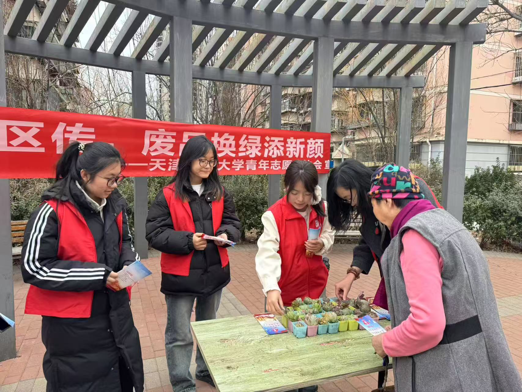 校青協在社區開展“雷鋒精神社區傳 廢品換綠添新顏”活動