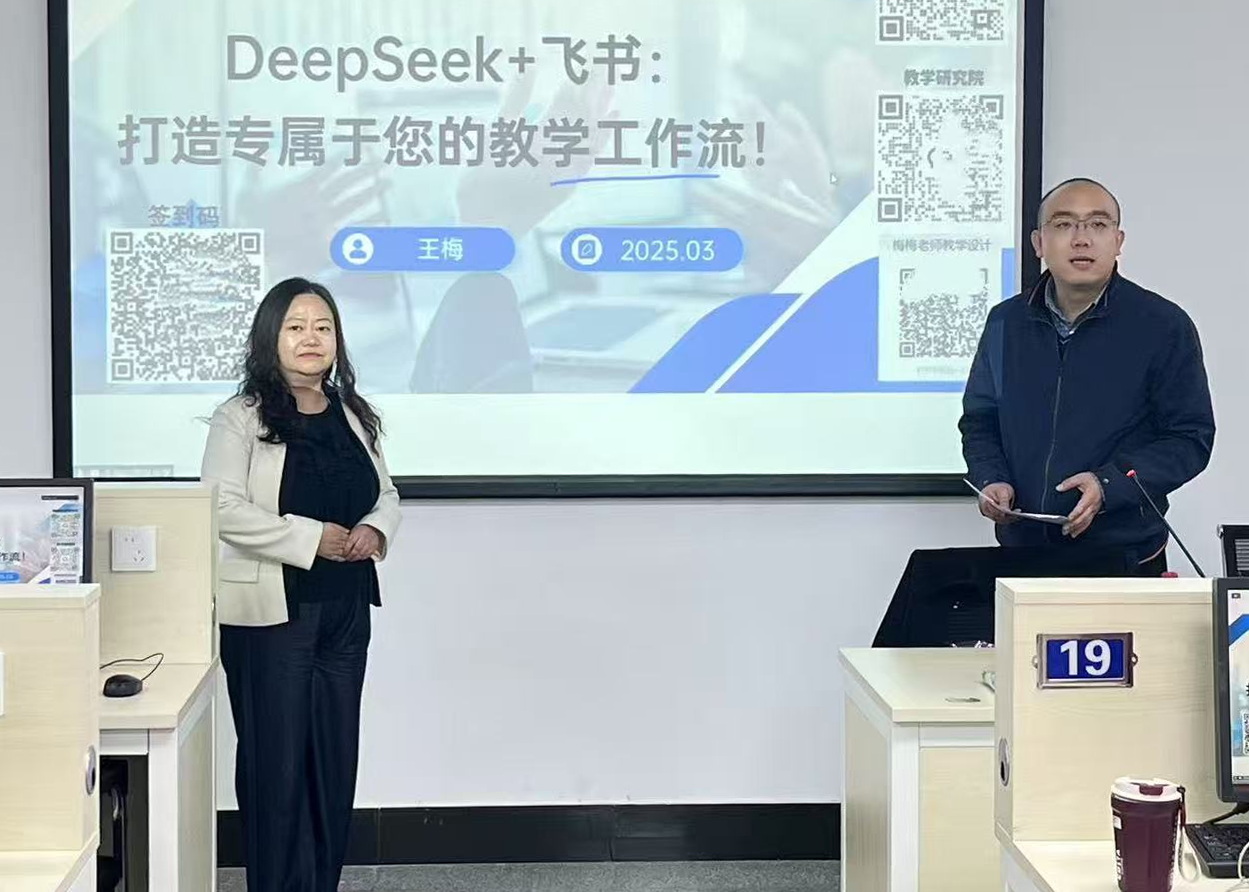 為加速教育教學(xué)數(shù)字化轉(zhuǎn)型,提升教師數(shù)字素養(yǎng),3月28日下午,教務(wù)處與教師發(fā)展中心聯(lián)合舉辦“AI賦能高校教育教學(xué)改革與創(chuàng)新——DeepSeek應(yīng)用及實例分析(第二期)”專題培訓(xùn)。本期培訓(xùn)特邀天津大學(xué)教育學(xué)院教授、博士生導(dǎo)師王梅擔(dān)任主講,為我校教師帶來“DeepSeek+飛書:打造專屬于您的教學(xué)工作流!”主題分享,培訓(xùn)通過線上線下同步開展,校內(nèi)各部門300余位教職員工參加。